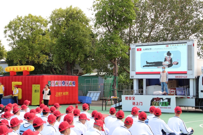 本次的應(yīng)急救護(hù)培訓(xùn)內(nèi)容分為心肺復(fù)蘇、常見急癥處理等應(yīng)急救護(hù)知識講座、大篷車實踐體驗環(huán)節(jié)、“強(qiáng)技能”主題交流。在體育館的同學(xué)們、班主任們、軍訓(xùn)教官們認(rèn)真觀看著市紅十字會黎子丹老師和梁潤泉助教的精彩授課,時而傳來陣陣掌聲。在操場進(jìn)行的是大篷車體驗項目,在學(xué)校黨委委員李燦澤同志的介紹下,市紅會何玉珍、高小紅等老師開始進(jìn)行了心肺復(fù)蘇、止血包扎等講解,隨后師生們進(jìn)行火災(zāi)逃生模擬、醉駕模擬、觸電模擬、滅火器使用、繃帶包扎等體驗。最后,通過主題交流、問卷調(diào)查等形式發(fā)現(xiàn),在場的師生對此次培訓(xùn)表示十分滿意,市紅十字會老師們對中山二中的學(xué)生積極配合與努力求學(xué)、對學(xué)校紅十字會的志愿者們的默默奉獻(xiàn)等方面贊賞有嘉。