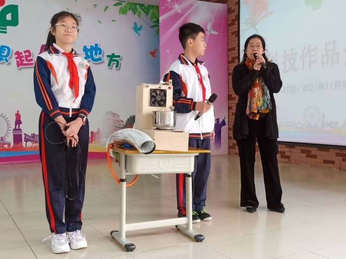 升旗儀式后,校會拉開序幕。品學(xué)兼優(yōu)的“小發(fā)明家”六2班趙梓濤同學(xué)展示了他的科技創(chuàng)新作品,臺上的他,熟練地演示并分享了作品——“抽煙機(jī)”的工作原理。隨后,韓主任采訪了他的創(chuàng)新作品的創(chuàng)作來源以及創(chuàng)新之處。臺下的同學(xué)們聽得津津有味,若有所思。趙子濤同學(xué)那精益求精、鍥而不舍的探索精神在同學(xué)們的心中扎根,學(xué)校鼓勵大家學(xué)習(xí)他善于觀察生活中的各類現(xiàn)象,勤于思考,遇到問題努力想出各種點(diǎn)子去實踐、去解決的能力。