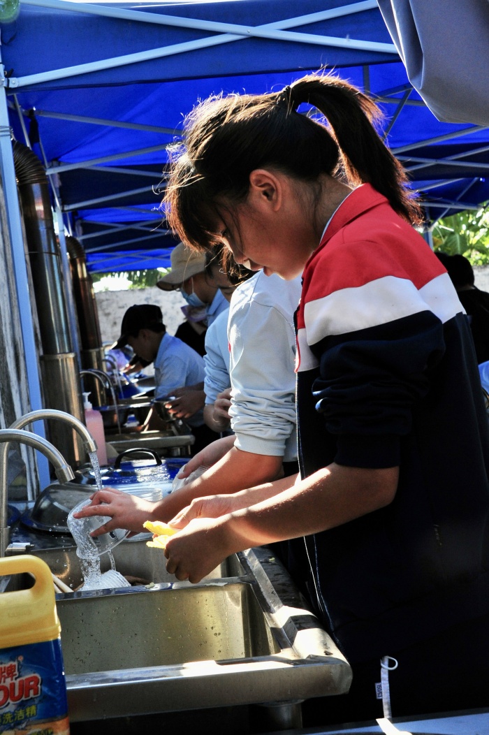 研學之旅,知行合一。六年級四個班的學生分為兩大組,一組負責開拓荒田——種菜苗,一組負責刷鍋洗碗——煮飯。