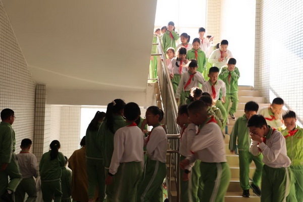 演練前,班主任向同學(xué)們講解消防安全知識(shí),告知每一位同學(xué)安全疏散路線及逃生方法。下午15:25分,突然響起的警報(bào)聲劃破了學(xué)校的寧靜,停車場(chǎng)附近濃煙滾滾。正副班主任引導(dǎo)同學(xué)們從指定路線有序地疏散到安全地帶。在老師的帶領(lǐng)下,同學(xué)們分小組迅速跑出教室,一隊(duì)接著一隊(duì),緊張有序地從安全疏散通道撤離至指定的安全地點(diǎn)。通過演練,同學(xué)們熟悉了逃生路線,做到能在危急信號(hào)響起時(shí),有序并快速地逃離現(xiàn)場(chǎng)。到達(dá)“安全集結(jié)點(diǎn)”,各班學(xué)生快速清點(diǎn)人數(shù),并向演習(xí)指揮老師報(bào)告班級(jí)情況。