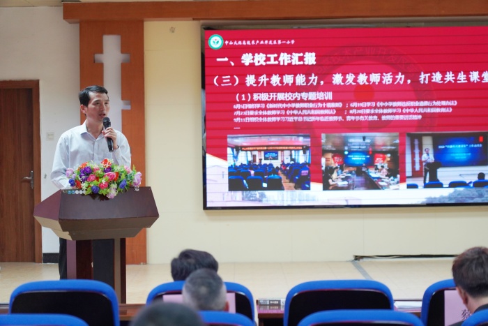 蔡長(zhǎng)青校長(zhǎng)首先對(duì)大家的到來(lái)表示熱烈的歡迎與感謝,并向家長(zhǎng)匯報(bào)了學(xué)校的辦學(xué)理念、近年來(lái)取得的成就和本學(xué)期工作新舉措,介紹了家委會(huì)的構(gòu)成、職責(zé)與任務(wù)等,希望所有家委會(huì)成員都能在校內(nèi)發(fā)揮先鋒帶頭作用,積極促進(jìn)學(xué)校各項(xiàng)工作的進(jìn)步提升。