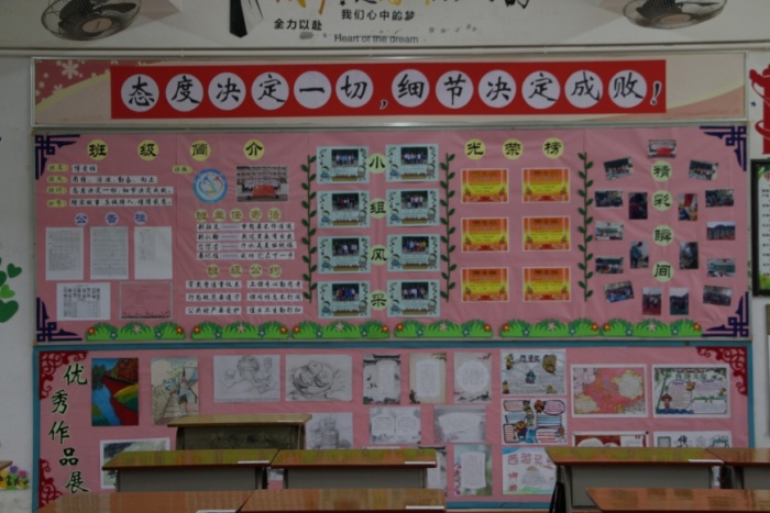 班級文化是一個班級的靈魂。每一張板報、每一幅圖畫、每一篇文章……所有細(xì)節(jié)的精心安排無不體現(xiàn)班級的凝聚力和創(chuàng)造力,展示師生們的審美情趣和文藝才華,詮釋著班級成員的理想和信念。