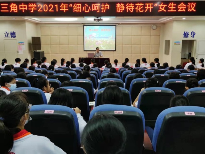 為引導(dǎo)學(xué)生正確認(rèn)識(shí)青春期,增強(qiáng)自我保護(hù)意識(shí),幫助女生理解生命意義,化解成長(zhǎng)中的困惑和煩惱,11月2日,三角中學(xué)在學(xué)校報(bào)告廳舉行主題為“細(xì)心呵護(hù),靜待花開”2021年女生會(huì)議。