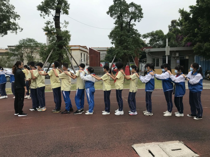 本次德育拓展活動首先由課題主持人王武輝老師和課題組成員孫滔、朱四萍、陳浩芳、劉樂琴、鄭志權(quán)等五位老師圍繞“愛國”為主題開展德育拓展活動。他們主持的游戲是 “重走長征路”,課題組的老師圍繞紅軍長征的紅色故事設(shè)置游戲情境,學(xué)生隊伍中指揮者根據(jù)老師設(shè)置的 “長征路線”,穿越預(yù)定的路線。游戲結(jié)束后,進(jìn)行游戲感受分享,在游戲中同學(xué)們感受到了小組同學(xué)規(guī)則、默契的重要性。同時也通過這個游戲,學(xué)生們深深地感受紅軍長征的不容易,在黑夜中“穿山越嶺”,秉著堅持就是勝利,永不放棄的敬業(yè)精神,突破種種障礙,最終到達(dá)勝利的彼岸,從而增強(qiáng)學(xué)生的愛國情懷,讓學(xué)生更加珍惜如今來自不易的幸福生活。