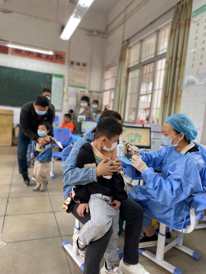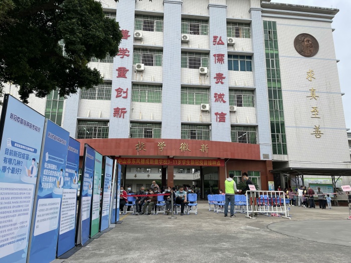 當(dāng)前國內(nèi)外疫情形勢(shì)依然嚴(yán)峻復(fù)雜,接種新冠疫苗,構(gòu)建群體免疫屏障,是阻斷新冠病毒傳播、保障全民健康的有效手段。接上級(jí)的疫苗接種通知,中山市東鳳穗成新徽學(xué)校認(rèn)真落實(shí)上級(jí)相關(guān)決策部署,東鳳疫情防控指揮部負(fù)責(zé)人黃春光到學(xué)校對(duì)接種點(diǎn)的相關(guān)工作進(jìn)行了指導(dǎo),醫(yī)護(hù)人員與全體教師群策群力、通力合作,順利完成學(xué)生新冠疫苗接種工作。