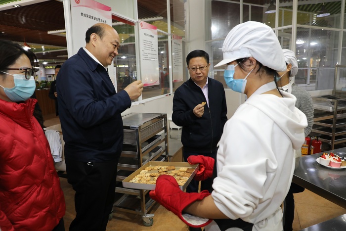 陳峰校長帶領(lǐng)督導(dǎo)工作組深入教學(xué)和實訓(xùn)場室,全面感受中山中專枕山跨水、滿目青翠的校園環(huán)境和豐富多彩的校園文化。核查組先后到達(dá)創(chuàng)意設(shè)計部、先進(jìn)制造與能源部、師生第二飯?zhí)煤蛯W(xué)前專業(yè)學(xué)習(xí)場地。中山中專學(xué)子彬彬有禮的談吐贏得核查組和視導(dǎo)人員的贊譽(yù)。在創(chuàng)意設(shè)計部理實一體化教室,核查組定睛細(xì)看競賽師生對作品打磨情況,并與競賽學(xué)生親切交流;在先進(jìn)制造與能源部,核查組了解學(xué)校專業(yè)教學(xué)條件,觀摩專業(yè)教學(xué)和學(xué)生競賽備賽情況;來到汽修運(yùn)用實訓(xùn)中心,核查組觀摩學(xué)生實訓(xùn)情況和學(xué)生動手實踐能力,了解汽修專業(yè)情況;在第二飯?zhí)?,核查組品嘗烘焙組學(xué)生烘焙的小餅干。