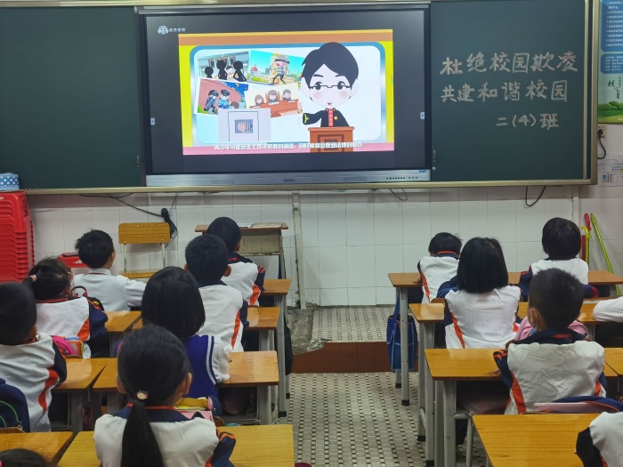 為持續(xù)深入做好中小學生欺凌防治工作,2021年11月22日,石岐實驗小學利用國旗下講話向全校師生倡議《杜絕校園欺凌 共建和諧校園》,隨后一起觀看學習視頻。