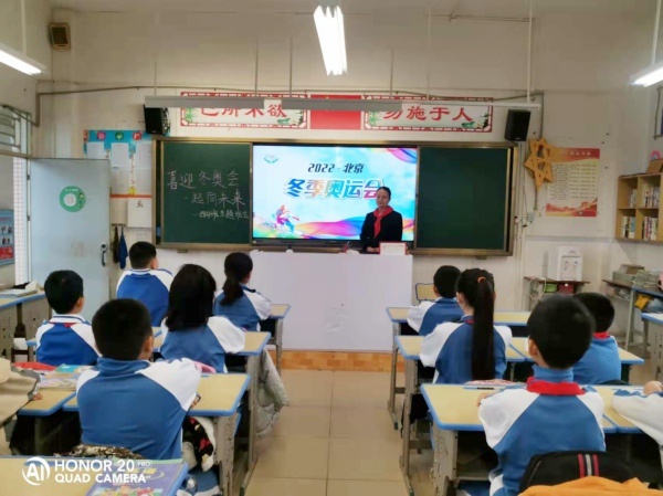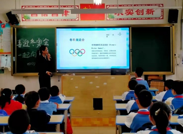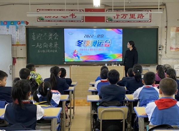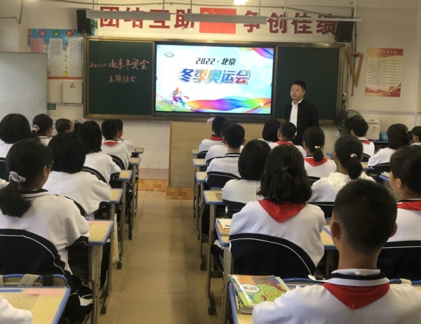 紅旗迎風(fēng)飄揚(yáng),人們微笑歌唱,用愛迎接朝陽,火炬閃耀光芒,展現(xiàn)亮麗色彩,慶賀北京冬奧到來。為啟發(fā)學(xué)生對2022冬奧會(huì)和祖國的祝福,增強(qiáng)了解形式多樣的冬奧文化,升華學(xué)生的愛國情懷。11月22日,錦標(biāo)學(xué)校舉行莊嚴(yán)的升旗儀式后,組織各班開展了“喜迎冬奧會(huì),一起向未來”主題班會(huì)活動(dòng)。