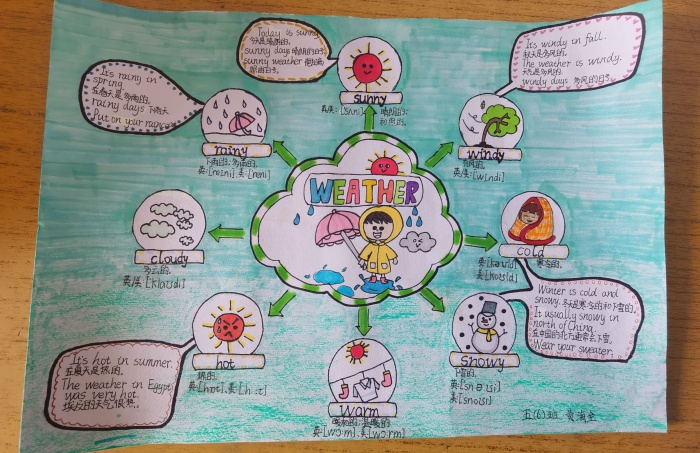 在教研會(huì)上,英語組的教師們集思廣益,共同探討,針對(duì)不同學(xué)段孩子的年齡特點(diǎn)設(shè)計(jì)了多種形式的英語特色作業(yè)。大家明確作業(yè)出發(fā)點(diǎn):此次特色作業(yè)評(píng)比,將從課本教材出發(fā),以單元整體話題為基點(diǎn),提高學(xué)生作業(yè)的趣味性和鞏固性。三年級(jí)以26個(gè)字母為主以及本冊(cè)書本單詞設(shè)計(jì)字母卡片和單詞卡片;四年級(jí)從我的家、我的學(xué)校、身體部位、時(shí)間、我的一天等本冊(cè)教材話題出發(fā),進(jìn)行單詞卡片設(shè)計(jì);五年級(jí)主要是以“季節(jié)、天氣、月份、節(jié)日等”話題展開思維導(dǎo)圖設(shè)計(jì);六年級(jí)除了設(shè)計(jì)思維導(dǎo)圖,還制作英語小報(bào)。
