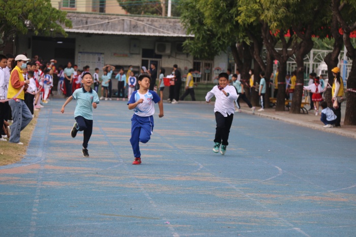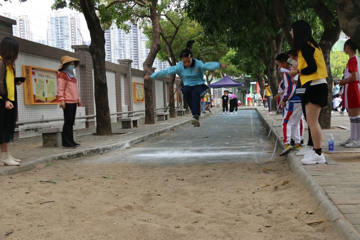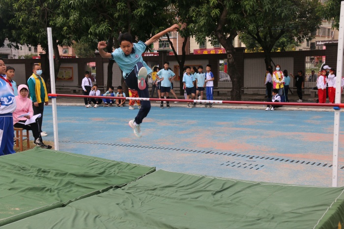 比賽高潮出現(xiàn)在下午的男子和女子4×100米接力賽上,隨著發(fā)令員的一聲槍響,運(yùn)動(dòng)員們英姿勃發(fā),鼓足干勁往前跑。瞧,“小蘇炳添”們緊握著拳頭,憋紅的小臉。運(yùn)動(dòng)員們有一個(gè)共同的目標(biāo):為班級(jí)爭(zhēng)光。賽場(chǎng)下,啦啦隊(duì)們?yōu)殛?duì)員吶喊助威,歡呼聲,喝彩聲,鼓掌聲不絕于耳。接著,進(jìn)行的是體育節(jié)小項(xiàng)目考核:立定跳遠(yuǎn)和25米往返跑。學(xué)生們自信倍增,意氣風(fēng)發(fā),奮力奔跑。