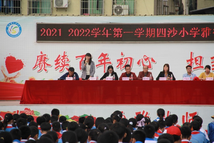 為更好總結(jié)雅行教育取得的成效,進(jìn)一步落實(shí)“雙減”政策,強(qiáng)化學(xué)生文雅習(xí)慣教育,不斷提升教育教學(xué)質(zhì)量,推動(dòng)學(xué)校高質(zhì)量發(fā)展,2021年11月15日上午,四沙小學(xué)組織全體師生在田徑場上舉行了雅行教育期中總結(jié)會(huì)。四沙小學(xué)校長歐慧芳、德育處、教務(wù)處和總務(wù)處代表分別進(jìn)行了總結(jié)發(fā)言。