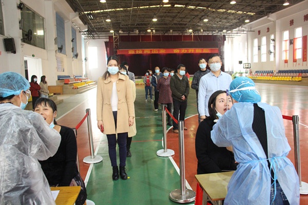 演練分三個情景開展,第一個情景是以廣播講解和現(xiàn)場提問的形式開展發(fā)現(xiàn)有新冠密接者、陽性報告情況時的處置,由馬成海副校長與全體同學(xué)進行講解,分別從三個方面進行理解和掌握:當學(xué)校教職員工、學(xué)生有新冠密接者、陽性報告情況時,配合疾控中心,根據(jù)疾控中心研判,對全校封閉管理,實施對學(xué)生、老師采取科學(xué)的應(yīng)對措施。1、如果學(xué)生未在學(xué)校時,學(xué)校進行封閉管理,通知學(xué)生停止返校,留在家里等待學(xué)校的進一步通知;2、如果學(xué)生是在校學(xué)習(xí)期間,學(xué)校實施封閉管理,學(xué)生戴好口罩,留在班級等待下一步的安排;3、如果學(xué)生在上學(xué)、放學(xué)途中,則根據(jù)具體要求進行安排和布置。接著第二個情景是師生全員檢測核酸演練,演練嚴格按照要求,學(xué)生按班級輪流集中檢測,在檢測前打好自己的二維碼,現(xiàn)場進行掃碼登記、測溫、登記、檢測。檢測程序有條不紊,工作按部就班,很好地詮釋了檢測的要求和做法。最后第三個情景是學(xué)生不舒服產(chǎn)生的嘔吐物的處理方法和做法的演練,在學(xué)生不舒服產(chǎn)生嘔吐物后,學(xué)校的校醫(yī)和清潔工人嚴格按照處理嘔吐物的方法,對嘔吐物進行清理、處理和消毒工作,一件一步,認真落實。