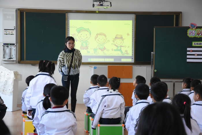 此次活動在觀摩課例中拉開序幕。孫美婷老師為全體老師展示了人民音樂出版社一年級下冊第七課歌曲《粉刷匠》一課。孫老師結(jié)合柯達伊音樂教學法,讓學生初步認識五線譜并認知s-m-d三音在五線譜中的位置,并能用準確的聲音學會歌曲。課堂上充分應用了信息技術(shù)希沃白板融合教學,鼓勵學生積極動手探究,培養(yǎng)學生的音樂素養(yǎng)。