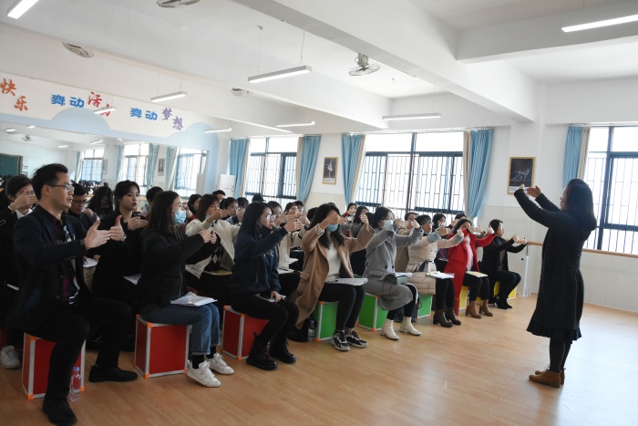 課例結(jié)束后,孫老師就本課例作了簡要的說課。隨后,鄧惠珍老師對孫老師的課堂進行了有針對性的點評。她指出,小學階段是學習音樂最重要的時期,要始終在音樂的本體里教學。要注意五準確:音準準確、節(jié)奏準確、結(jié)構(gòu)準確、發(fā)聲準確、音樂形象準確。強調(diào)在教學過程中教師的范唱十分重要,對教授的內(nèi)容要按照不同的年級階段的要求進行。隨后,鄧老師從歌曲導入、認知五線譜、唱、讀、寫等方面一一舉例示范。最后,全體老師觀看了匈牙利四年級的一節(jié)課例視頻。鄧老師強調(diào)音樂教師的工作是通過音樂去育人,教師要通過自身的音樂素養(yǎng)展示音樂的魅力,希望老師在課堂實踐學習中靈活運用好柯達伊教學方法,提升個人專業(yè)能力,才能讓學生有所提升。
