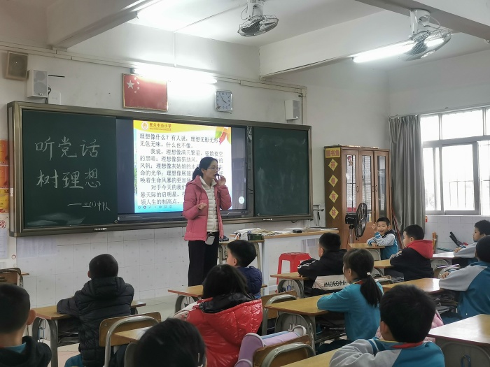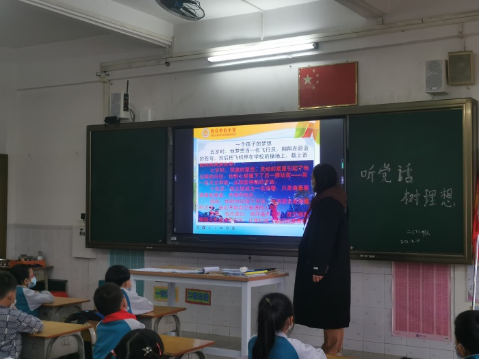 下午的班隊課,各班中隊輔導(dǎo)員的精心準備,主題教育開展非常順利。活動當(dāng)中,首先各班中隊輔導(dǎo)員圍繞“什么是理想?”讓隊員們了解理想的意義和重要性。接著,引導(dǎo)學(xué)生發(fā)揮想象“理想像什么?”讓學(xué)生暢所欲言。緊接著,通過用《一個孩子的夢想》的故事和大量數(shù)據(jù)的分析,讓隊員們討論:如何實現(xiàn)自己的理想?將來為了實現(xiàn)理想做怎樣的準備?現(xiàn)實生活哪些事情最容易影響我們的意志,原因是什么?該如何處理?讓隊員們在討論中明白樹立理想的重要性,激發(fā)了全體隊員樹立理想、刻苦學(xué)習(xí)、報效祖國的信心和熱情。最后,通過欣賞古人理想的故事和朗讀關(guān)于理想的名人名言等活動形式,懂得實現(xiàn)理想應(yīng)不懼困難,通過不斷的努力奮斗而實現(xiàn)。