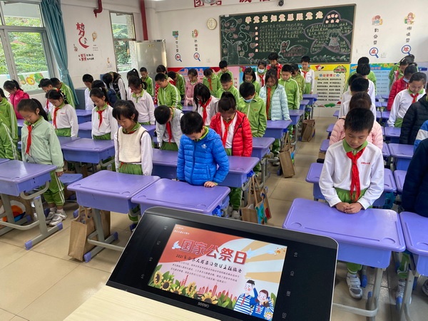 2021年12月13日是第八個國家公祭日。為了緬懷在84年前慘遭侵華日軍屠殺的遇難同胞們,讓同學們牢記歷史、勿忘國恥,當日下午,開發(fā)區(qū)香暉園小學開展了國家公祭日主題班會活動。