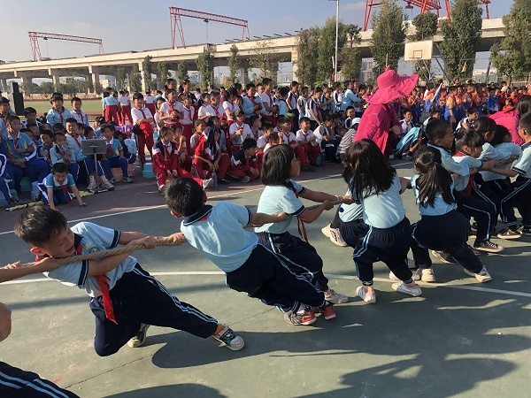 下午的趣味運(yùn)動(dòng)比賽豐富多彩,充分考慮到了學(xué)生的年齡特點(diǎn),也將學(xué)生的興奮點(diǎn)點(diǎn)燃。低年級(jí)有天旋地轉(zhuǎn)射門比賽,中高年級(jí)有籃球運(yùn)球接力;每個(gè)年級(jí)都有集體跳繩和拔河比賽。歡呼聲、吶喊聲響徹安阜小學(xué)上空,所有比賽在拔河比賽的高潮中結(jié)束。