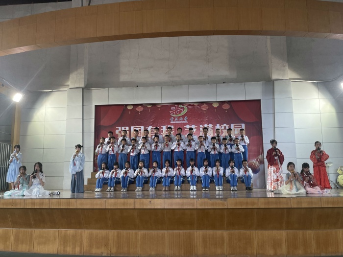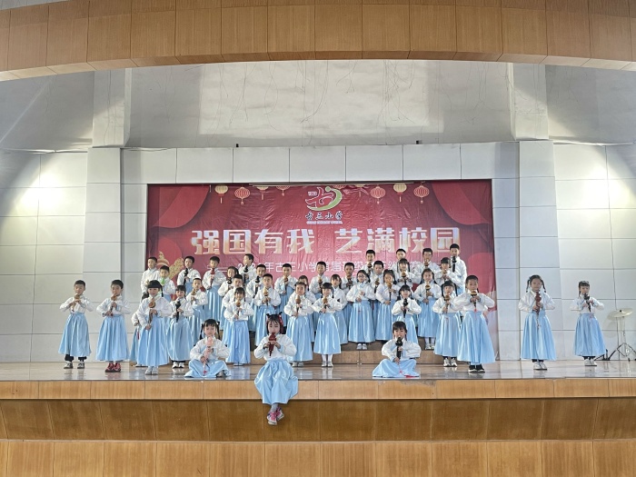 比賽按照抽簽順序登臺(tái)表演。舞臺(tái)上,小演奏家們個(gè)個(gè)衣著整齊靚麗,精神飽滿,各班級(jí)用領(lǐng)奏、齊奏、合奏等各種方法,同時(shí)巧妙編排隊(duì)形,配合以輕盈優(yōu)美的舞蹈,展現(xiàn)了同學(xué)們對(duì)藝術(shù)的喜愛。絲竹聲聲,童心飛揚(yáng)!同學(xué)們滿懷激情,舉手投足間散發(fā)著自信、堅(jiān)定和執(zhí)著。他們吹奏整齊,吹出的樂音圓潤柔美,令人陶醉。吹奏的曲目《金孔雀輕輕跳》讓人禁不住跟著輕輕躍動(dòng),《龍的傳人》宏偉大氣,《大長(zhǎng)今》悠揚(yáng)婉轉(zhuǎn),孩子們紛紛化身為“音樂小精靈”,給大家?guī)硪粓?chǎng)美妙的視聽盛宴!