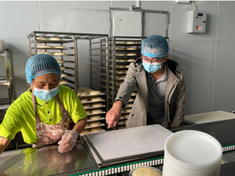 一成不變的工作和生活方式,難以讓他從中收獲成就感。為實現自我發(fā)展, 2020年5月,趙大慧通過申請創(chuàng)業(yè)貸款及家人幫助,籌措資金一百萬元創(chuàng)設食品公司。在他的用心經營下,公司實現了年銷售額過百萬元的“小目標”。從速凍的紅糖卷到蔥燒大餅半成品,趙大慧公司生產的產品成為不少茶樓的供應商品。