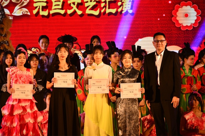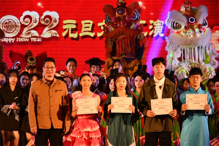 最后,校長(zhǎng)程少輝、副校長(zhǎng)王劍勤分別為獲獎(jiǎng)的表演學(xué)生頒發(fā)榮譽(yù)獎(jiǎng)狀,鼓勵(lì)他們?cè)俳釉賲?,更上一層樓?/p>