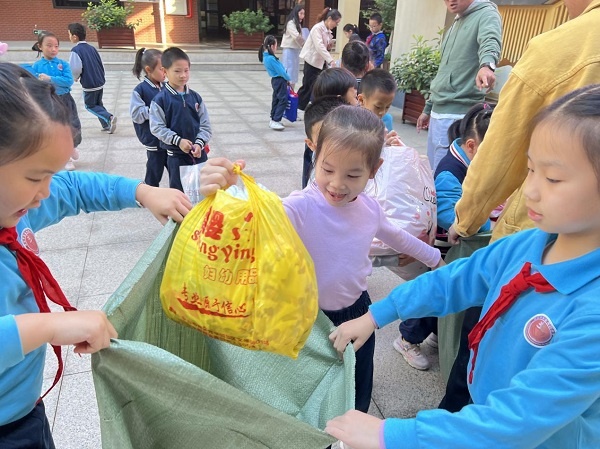 活動當(dāng)天,同學(xué)們帶來了大袋小袋的衣物進(jìn)校,排著隊(duì)把物品分類排隊(duì)投放進(jìn)編織袋,一件衣物、一雙鞋子、一個書包、一本書……匯聚著家長和孩子們的愛心。捐獻(xiàn)過程中,同學(xué)們臉上都洋溢著美好的笑容,體會著“予人玫瑰,手有余香”的幸福。