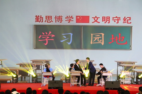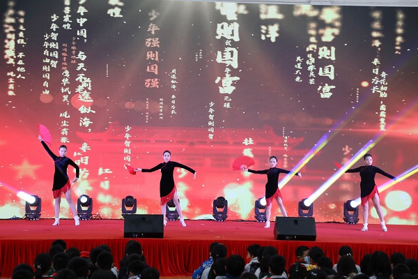 演出結(jié)束后,評出一等獎十名,他們分別是一(1)班舞蹈《天天向上》、二(5)班舞蹈《阿拉伯之夜》、三(2)班舞蹈《媽媽寶貝》、四(5)班合唱《強(qiáng)國少年》、五(5)班舞蹈《少年志》、六(2)班舞蹈《大魚》,七(1)班小品《向領(lǐng)導(dǎo)匯報(bào)》、七(2)班小品《占位子》、九(2)班舞蹈《青花瓷》、九(4)班小品《走過場》,學(xué)校領(lǐng)導(dǎo)分別為獲獎班級頒發(fā)獎狀。