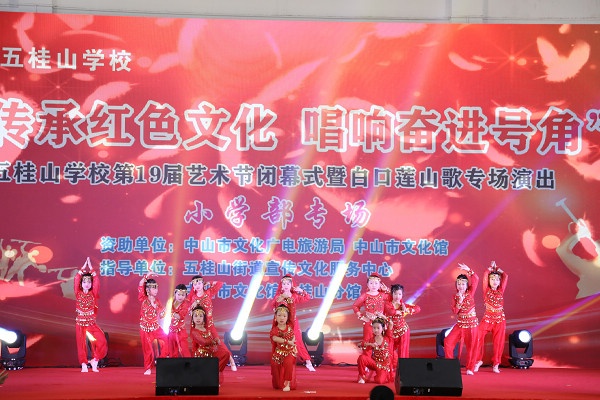 演出節(jié)目緊緊圍繞“傳承紅色文化 唱響奮進(jìn)號角”主題。全校兩部每班展演1-2個節(jié)目,總共呈現(xiàn)了50多個節(jié)目。節(jié)目表演形式新穎,內(nèi)容豐富,有聲樂、舞蹈、樂器演奏、相聲、小品、手語、街舞等,多方面展示了五桂山學(xué)校學(xué)生豐富的校園生活以及文明進(jìn)取、健康向上的精神風(fēng)貌。曾獲得中山市第五屆少兒花會金獎的白口蓮山歌《生態(tài)五桂山》作為客串節(jié)目,再次向全體師生呈現(xiàn)了五桂山綠水青山、宜商、宜居的生態(tài)風(fēng)貌。