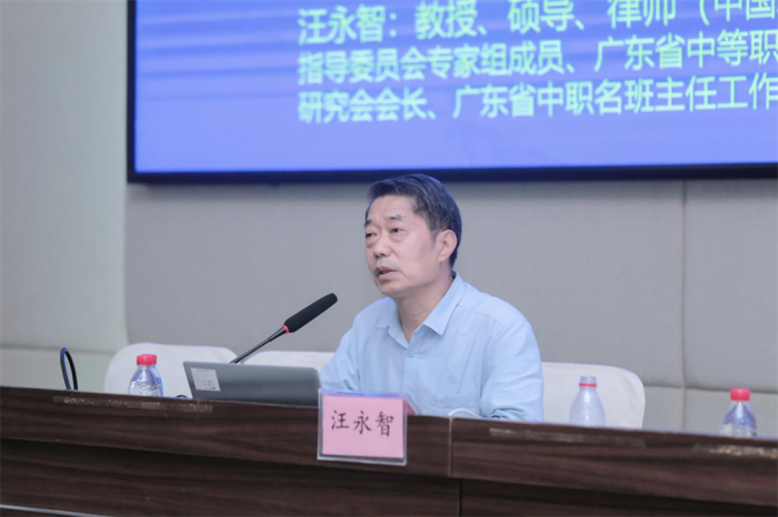 論壇開幕式后,廣東省中等職業(yè)學(xué)校德育研究會(huì)會(huì)長(zhǎng)、廣東省中職德育研究與指導(dǎo)中心主任汪永智教授對(duì)班主任們進(jìn)行了“認(rèn)真學(xué)習(xí)落實(shí)黨的二十大精神 譜寫中職班主任工作新篇章”的專題報(bào)告。汪教授從班主任的價(jià)值意義和班主任能力水平等方面展開,希望班主任們成長(zhǎng)為有高度、有溫度、有廣度、有深度并且具有溝通、協(xié)調(diào)能力的人,為職業(yè)教育的蓬勃發(fā)展做出更新更大的貢獻(xiàn)。