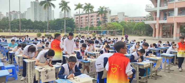3月20日下午,中山市坦洲實(shí)驗(yàn)中學(xué)第十九屆藝術(shù)節(jié)書(shū)法現(xiàn)場(chǎng)比賽,在學(xué)校廣場(chǎng)成功舉行。該校副校長(zhǎng)楊建萍、德育處主任劉明、團(tuán)委書(shū)記黃浪靜、校辦公室副主任全亞玲、美術(shù)科組長(zhǎng)陳東輝老師以及袁玲玲老師等有關(guān)領(lǐng)導(dǎo)和教師出席并指導(dǎo)了本次比賽,活動(dòng)由該校團(tuán)委主辦,由美術(shù)組承辦。