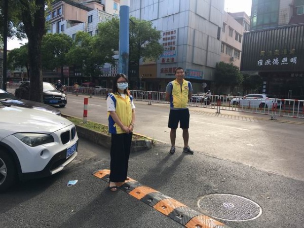 家長(zhǎng)志愿者服務(wù)隊(duì)站立在學(xué)校各個(gè)出入口執(zhí)勤,“同學(xué)下車(chē)請(qǐng)家長(zhǎng)駕車(chē)離開(kāi),” “小同學(xué)不要跑小心慢走,”“家長(zhǎng)們請(qǐng)往后站站”“請(qǐng)同學(xué)們走路注意腳下,不要擠”……志愿者服務(wù)隊(duì)一邊耐心地向家長(zhǎng)進(jìn)行善意的提醒、勸導(dǎo),一邊和老師照看放學(xué)的孩子。