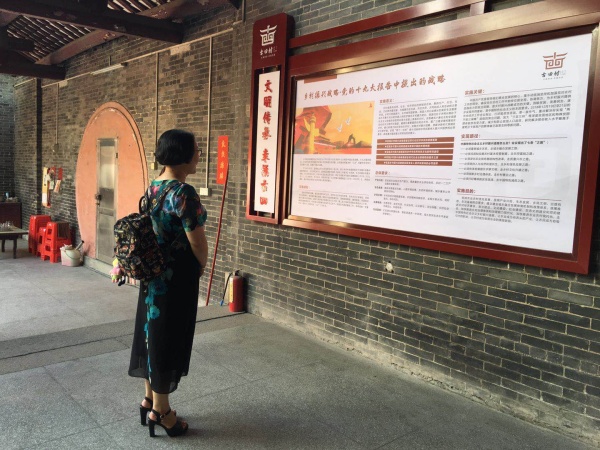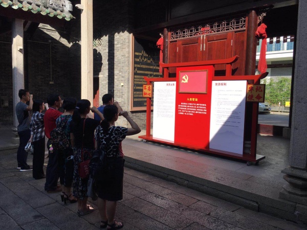 鄧氏大宗祠興建于清朝光緒年間,這里曾經(jīng)是共產(chǎn)黨地下組織的革命根據(jù)地,并在此升起古鎮(zhèn)鎮(zhèn)的第一面五星紅旗。在古四宗祠線路主講成員的介紹下,曹三小學全體黨員教師了解到鄧氏宗祠早在抗日戰(zhàn)爭時期就成為廣東省青年抗日先鋒隊中山縣隊的駐足點。古鎮(zhèn)鎮(zhèn)戰(zhàn)時救護隊也在這里成立,當時有上百名的古鎮(zhèn)青年參加了戰(zhàn)時救護隊。在“白色恐怖”時期,鄧氏宗祠成為黨組織地下活動的據(jù)點。解放后中山縣委常委、中山縣副縣長鄧永成就曾以教師的身份在此教學并開展工作。