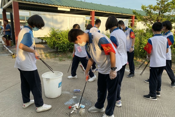 2020年曹步中學(xué)積極響應(yīng)上級(jí)號(hào)召——深入開展文明校園創(chuàng)建活動(dòng)。為了落實(shí)“文明”活動(dòng),保護(hù)校園的衛(wèi)生環(huán)境,提升校園文化質(zhì)量、提高校園文明程度、推動(dòng)校園育人環(huán)境進(jìn)一步優(yōu)化,曹步中學(xué)于6月30日下午組織了學(xué)生會(huì)全體同學(xué)對(duì)校園周邊進(jìn)行了徹底清理。