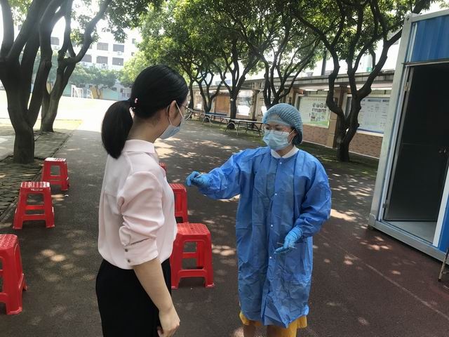 本次模擬演練以一年級(jí)新生入學(xué)場(chǎng)景,分別模擬了校南門(mén)9月1日一年級(jí)新生入校體溫檢測(cè);一年級(jí)新生進(jìn)課室;值日教師到位指導(dǎo)課間休息,以及正常天氣放學(xué)和遇大暴雨放學(xué)的不同場(chǎng)景。