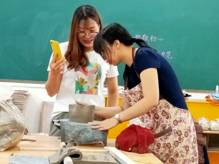 為了促進跟崗教師與鎮(zhèn)南美術(shù)教師的學習交流,使他們得到更好、更快的成長與發(fā)展,鎮(zhèn)南小學為跟崗教師制定了有層次、有梯度、有實效的學習計劃和任務(wù)。9月7日,鎮(zhèn)南小學陶藝教師為跟崗教師開展了制陶學習活動。