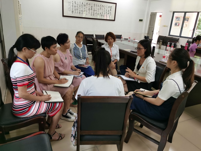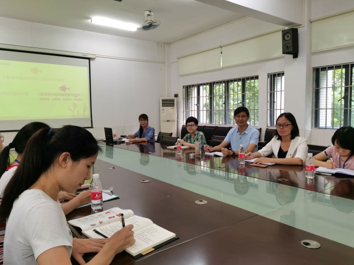 本次活動(dòng)由英語(yǔ)科組長(zhǎng)陳虹老師主持,首先由科組長(zhǎng)向各位領(lǐng)導(dǎo)和老師們綜合反饋和總結(jié)了英語(yǔ)科組近5年的發(fā)展情況。陳虹老師全面、詳細(xì)地分析了科組力量,這一支由老中青教師組成的隊(duì)伍,可謂是一支臥虎藏龍的隊(duì)伍,能量滿滿。緊接著科組長(zhǎng)從教學(xué)現(xiàn)狀、教學(xué)常規(guī)、教研等幾方面客觀分析了本科組存在的一些問(wèn)題,并提出了一些改進(jìn)的措施,更進(jìn)一步規(guī)劃了下一步英語(yǔ)科組的發(fā)展,明確接下來(lái)前進(jìn)的方向。繼科組長(zhǎng)分析完科組情況之后,三位校長(zhǎng)都提出了一些不同的建議和希望。楊校長(zhǎng)首先非常欣賞和肯定了英語(yǔ)科組長(zhǎng)陳虹老師的引領(lǐng),強(qiáng)調(diào)教學(xué)的首要任務(wù)是立德樹(shù)人,希望大家能更進(jìn)一步將英語(yǔ)教學(xué)與德育相結(jié)合,結(jié)合科組內(nèi)的師資力量促進(jìn)教學(xué)教研更上一個(gè)臺(tái)階。余校長(zhǎng)給英語(yǔ)帶了更多的祝福,并寄予厚望。廖校長(zhǎng)作為我們英語(yǔ)科組的跟科行政,她先是有針對(duì)性地分析了她了解到的英語(yǔ)科組的情況,就此也提出了她的一些建議,如何扎實(shí)課堂,如何落實(shí)好英語(yǔ)課堂小組合作,讓小組合作發(fā)揮更大的學(xué)習(xí)效力,也是老師們接下來(lái)要思考,要踐行,要研討的重點(diǎn)。三位校長(zhǎng)的建議和寄望給了科組老師很大的鼓勵(lì)和信心,老師們會(huì)把這些建議和寄望牢記在心。接下來(lái)進(jìn)行了本次活動(dòng)的第二部分,分組研討本學(xué)年一師一優(yōu)課的課型、高效備課、創(chuàng)新作業(yè)、如何更好開(kāi)展小組合作等幾項(xiàng)內(nèi)容。中年級(jí)和高年級(jí)組的老師在討論時(shí)都積極發(fā)言,講述了各自在課堂上的實(shí)施辦法以及備課情況,也提出了自己在教學(xué)實(shí)踐中存在的困惑,由老師們共同談?wù)摻鉀Q問(wèn)題。
