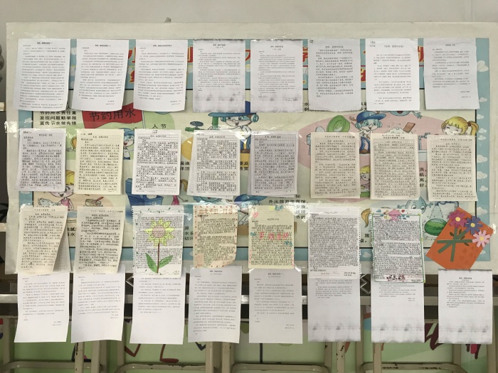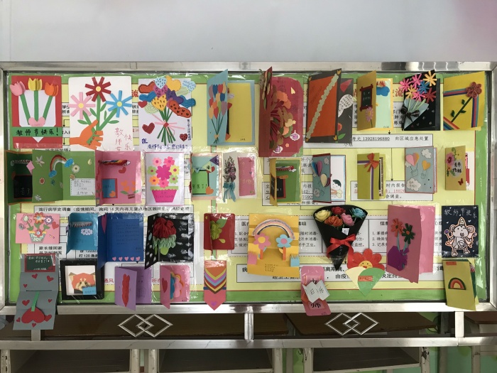 搜集好每個班最優(yōu)秀的五份賀卡跟五篇文章,由年級組長胡翠連、何夢雅、李秀芳老師張貼在學校的展覽板上供大家觀看、閱讀。