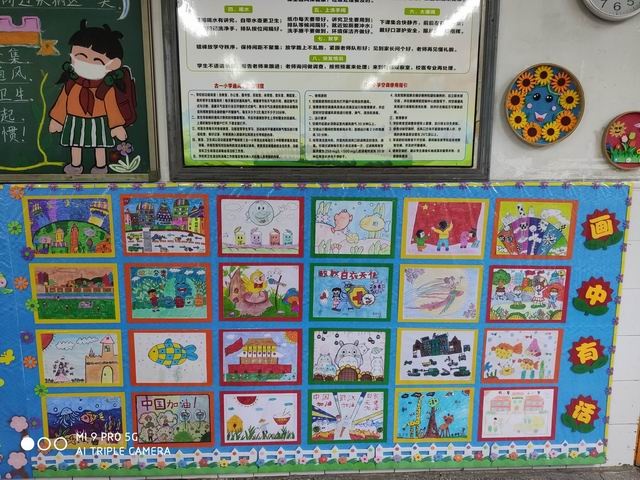 金秋十月,古一小學(xué)一(2)班也換上了光彩奪目的新裝。進(jìn)入一(2)班的正門,一個(gè)好看的班徽已經(jīng)看出了一(2)班是一個(gè)很友愛的班級(jí)。班主任郭根香老師通過查找資料,設(shè)計(jì)樣式,描繪出一幅幅精美的圖畫。教室的門前都設(shè)有別具一格的班牌,內(nèi)容包括班徽、每月評(píng)選的文明班級(jí)獎(jiǎng)牌、班主任寄語,這些讓全班師生時(shí)刻不忘自己是集體中的一員,同時(shí)也顯示著一(2)班堅(jiān)不可摧的凝聚力。課室前面都設(shè)有班務(wù)管理欄,班務(wù)欄中,展示了本班的班級(jí)公約、學(xué)生值日表、班干職責(zé)、課程表等班級(jí)制度文化。課室兩邊的墻壁上都標(biāo)有具有金話筒特色的班級(jí)標(biāo)語及班歌,黑板報(bào)以“疫情防疫”為主題,內(nèi)容充實(shí)、設(shè)計(jì)美觀、結(jié)構(gòu)合理。板報(bào)內(nèi)容根據(jù)一(2)班建設(shè)主題進(jìn)行選材,并采用不同藝術(shù)形式進(jìn)行表現(xiàn)。特色展欄里記錄著特色文化建設(shè)的點(diǎn)點(diǎn)滴滴;評(píng)比欄看到了班級(jí)成員力爭(zhēng)上游的不懈勁頭;畫中有話讀懂孩子們的童貞純情;明日之星里體現(xiàn)著同學(xué)們的互相學(xué)習(xí)、天天向上的精神風(fēng)貌;學(xué)習(xí)榜樣更寄喻著孩子們的茁壯成長(zhǎng)……