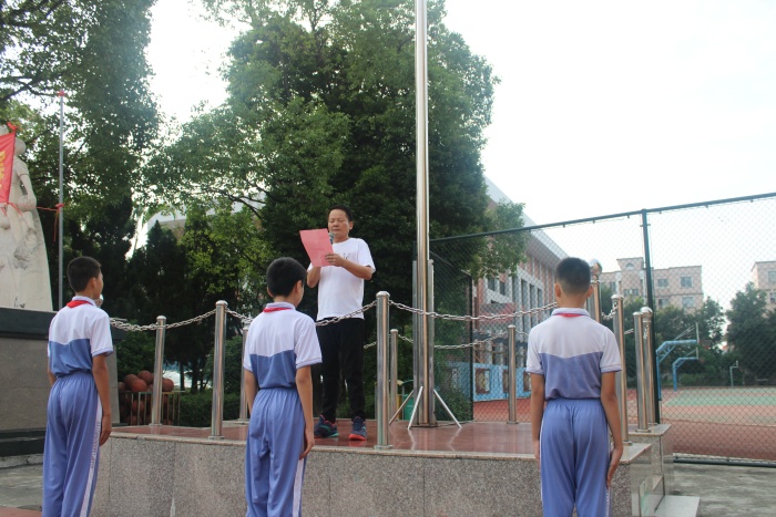 活動伊始,全校師生面向升旗臺升國旗,唱國歌,少先隊(duì)員向鮮紅的五星紅旗莊嚴(yán)敬禮。緊接著,海洲第二小學(xué)陳富權(quán)校長面向全校師生發(fā)表國旗下講話,陳富權(quán)校長圍繞“感恩、知國、報(bào)國、安全”四個方面,強(qiáng)調(diào)應(yīng)常懷感恩之心,要主動了解偉大的祖國,為國家富強(qiáng)民族復(fù)興而努力學(xué)習(xí),有強(qiáng)健的身體、有堅(jiān)強(qiáng)的意志,以報(bào)效國家、傳承文明。最后,陳富權(quán)校長總結(jié),八天漫長的假期,安全要放在首位。