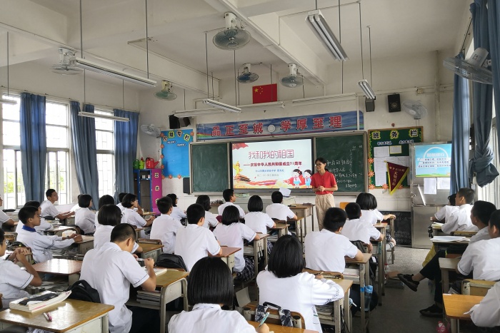 值祖國71華誕之際,曹步初級中學(xué)初三(5)班于2020年9月28日召開了以“愛國”為主題的班會活動。