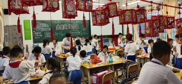 活動(dòng)前,各班主任精心籌劃,認(rèn)真準(zhǔn)備活動(dòng)?;顒?dòng)中,學(xué)校各班級(jí)班主任通過(guò)視頻、音樂(lè)、朗誦、講故事等形式,讓孩子們了解中秋節(jié)的傳統(tǒng)文化,知曉中秋節(jié)的習(xí)俗趣事。在賞花燈、猜燈謎、吃月餅和柚子等活動(dòng)的過(guò)程中,感悟團(tuán)圓、和諧的幸福,增進(jìn)同學(xué)之間的友誼,顯得其樂(lè)融融。多種多樣的活動(dòng)讓傳統(tǒng)節(jié)日、傳統(tǒng)習(xí)俗走進(jìn)課堂,走入孩子們的心里。