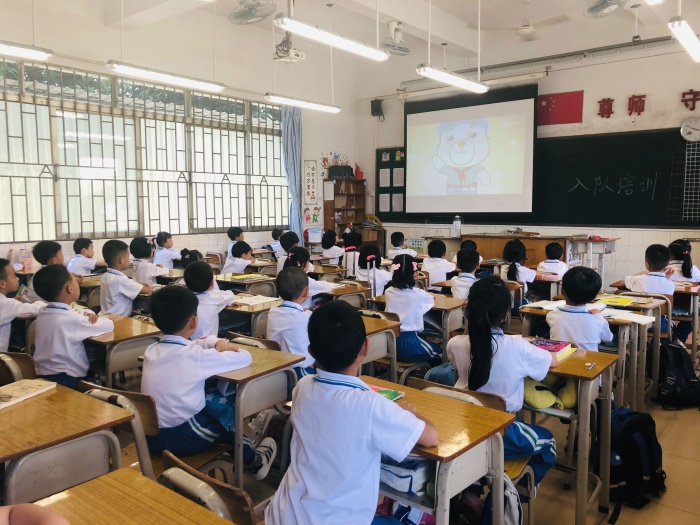 特別的是,一年級新生開展了新生入隊儀式。一年級班主任向?qū)W生講解隊旗、隊徽、紅領(lǐng)巾和隊禮的知識,學(xué)生在課堂上知道了紅領(lǐng)巾是少先隊的標志,練習(xí)了如何規(guī)范佩戴紅領(lǐng)巾,知道了怎樣敬隊禮及隊禮所表示的意義,班主任帶領(lǐng)學(xué)生一起學(xué)習(xí)呼號,合唱了少先隊隊歌。學(xué)生們精神飽滿,情緒高漲,一張張純真的笑臉流露著對隊組織的向往和崇敬,也流露出他們加入少先隊組織的堅定決心!這次活動讓一年級新生初步了解了少先隊,讓他們擁有少先隊生涯的美好開端,也培養(yǎng)了他們的組織意識,增強了作為一名少先隊員的強烈歸屬感和自豪感!