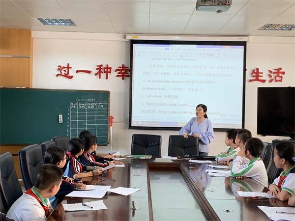 最后,由英語老師劉璐老師培訓(xùn),說明在課堂中各種加扣分的規(guī)則與現(xiàn)象。讓各主持人明確各個(gè)加分及扣分點(diǎn),并進(jìn)行現(xiàn)場(chǎng)模擬,讓小主持人對(duì)活動(dòng)的加扣分有了更明確的認(rèn)知。