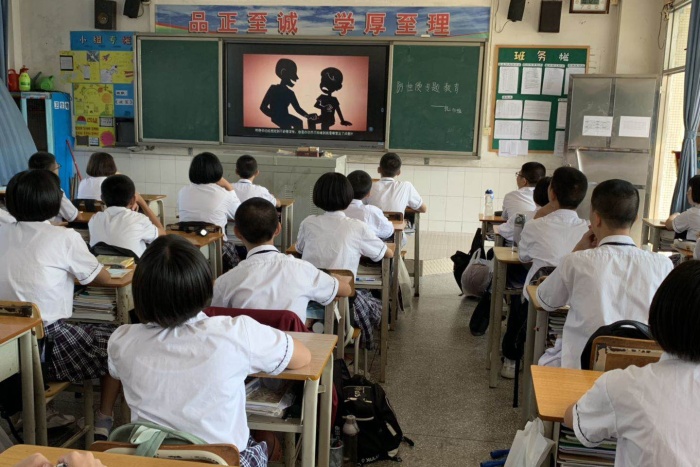 首先,廖老師為初二(4)班的同學(xué)進(jìn)行班會(huì)的引入——“什么是性侵害”?接著,班會(huì)講到了性侵有哪些危害。廖老師介紹了駭人聽聞的數(shù)據(jù)和新聞,反映了防性侵的重要性,并告訴同學(xué)們性侵害會(huì)給未成年人帶來哪些危害。然后,廖老師給同學(xué)們看了性侵的危害和方法,說明了如何自我保護(hù)防止性侵害:1.外出應(yīng)結(jié)伴而行;2.未經(jīng)家長(zhǎng)許可,不要在別人家留宿;3.任何人的的行為,只要讓你感到痛或不舒服,就立刻表示反抗,并盡快告訴家人和其他可信賴的成年人等等。老師那鏗鏘有力的話語,目的就是讓同學(xué)們牢記防性侵。
