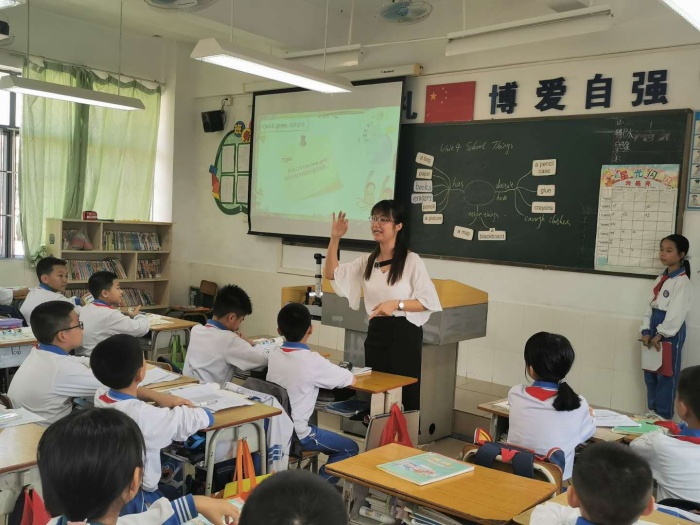 本次英語教研活動由英語科組長陳虹老師統(tǒng)籌與主持,活動的主題是探討小組合作在小學英語教學中的運用。本次研討活動主要包括課例展示和評課研討兩個議程。第一個議程由陳虹老師進行了小組合作的詞匯課課例展示,她執(zhí)教的是廣東版《開心學英語》五年級上冊《Unit 4 School Things》。陳虹老師課前設計了《小組學習導學案》,讓學生進行了前置性學習,充分調(diào)動學生學習的自主性。在課堂上,陳虹老師反饋了學生們前置學習的情況。同時,老師還多次組織小組合作學習,通過小組的交流和匯報,讓學生輕松掌握本節(jié)課的重點和難點。精彩的課例展示讓聽課的教師們受益匪淺。