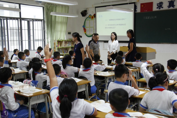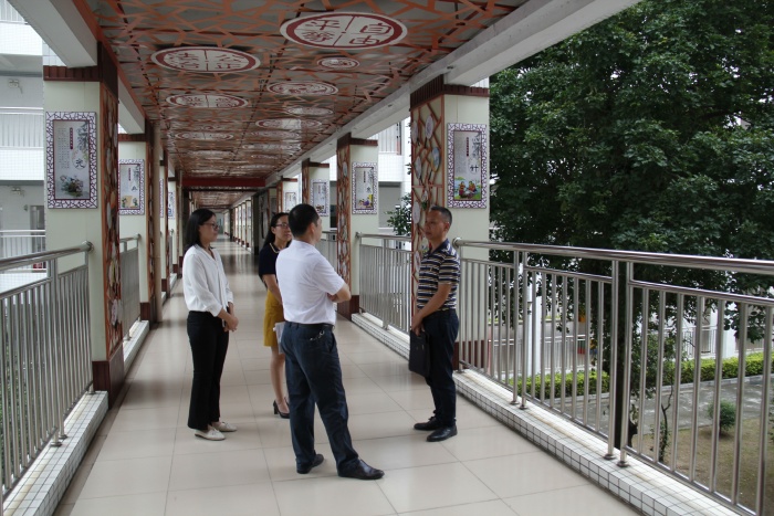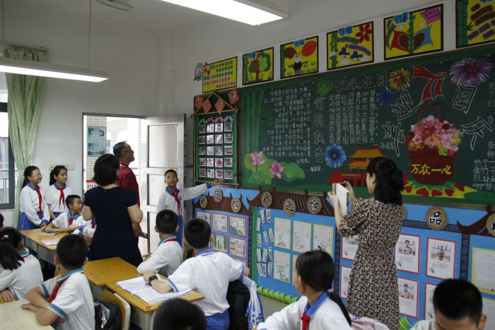 當天下午,在鎮(zhèn)南小學廖秋菊副校長與余旭鳳副校長的陪同下,評估組對德育、教學、辦學特色、后勤四大方面,進行了全面深入的檢查。在鎮(zhèn)南小學全體行政的陪同下,評估人員對校園文化進行了巡視,干凈整潔的校園環(huán)境、濃厚的藝術(shù)氛圍、彬彬有禮的學生,都給評估組的領(lǐng)導留下了良好的印象。五1班“竹夢園”和六4班“皮影舍”作為學校特色班級代表,也接受了巡查。兩個班級的特色鮮明,內(nèi)涵豐富,班風班貌處處滲透出特色文化的韻味。學校學生自主管理、小組合作學習的開展,也讓評估組成員耳目一新。他們還現(xiàn)場巡查了傳統(tǒng)文化課、軟筆書法課、勞動技術(shù)課、道德與法制課等課程開展情況,效果良好。