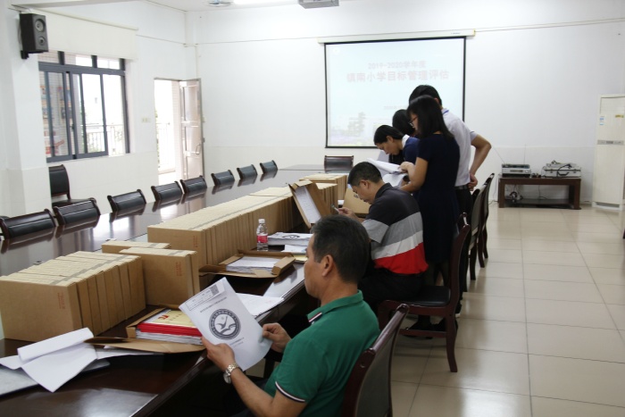 最后,評估組成員查閱學校各項常規(guī)資料。他們根據(jù)檢查評估的內(nèi)容,利用《鎮(zhèn)南小學推進素質(zhì)教育目標管理評估資料索引》,對鎮(zhèn)南小學黨建工作、隊伍建設(shè)、規(guī)范辦學、校園安全、德育常規(guī)、教學常規(guī)、后勤保障、綜合素養(yǎng)、教學質(zhì)量、特色建設(shè)等方面的資料進行了認真查閱,仔細量化,合理評分,及時反饋,并給學校提出一些中肯的改進建議。
