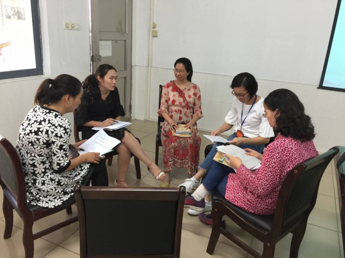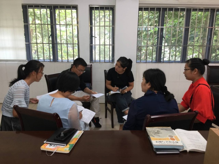 第二節(jié)課,全體語(yǔ)文教師集中教研室,繼續(xù)開展教研活動(dòng)。在吳曉華老師的帶領(lǐng)下,全體語(yǔ)文教師誦讀和吟詠了詩(shī)歌《大風(fēng)歌》。林穎欣老師和占有武老師對(duì)上周外出學(xué)習(xí)的收獲進(jìn)行了交流和分享。林穎欣老師以《我的心砰砰跳》、《我來(lái)編童話》等課例為例,提出“寫作教學(xué)生活化”“關(guān)注寫作過(guò)程的指導(dǎo)”“教會(huì)學(xué)生點(diǎn)評(píng)”三個(gè)觀點(diǎn),讓教師們?cè)俅蚊鞔_了寫作教學(xué)的重難點(diǎn),疏通了寫作教學(xué)的思路。占有武老師則結(jié)合相關(guān)課例,分享口語(yǔ)交際教學(xué)要注意“立足教材,不拘泥教材”“情景的創(chuàng)設(shè),突破難點(diǎn)”“言語(yǔ)導(dǎo)向生活實(shí)踐”“書面語(yǔ)輔助口語(yǔ)交際”等幾方面的內(nèi)容。