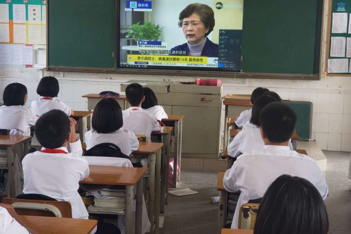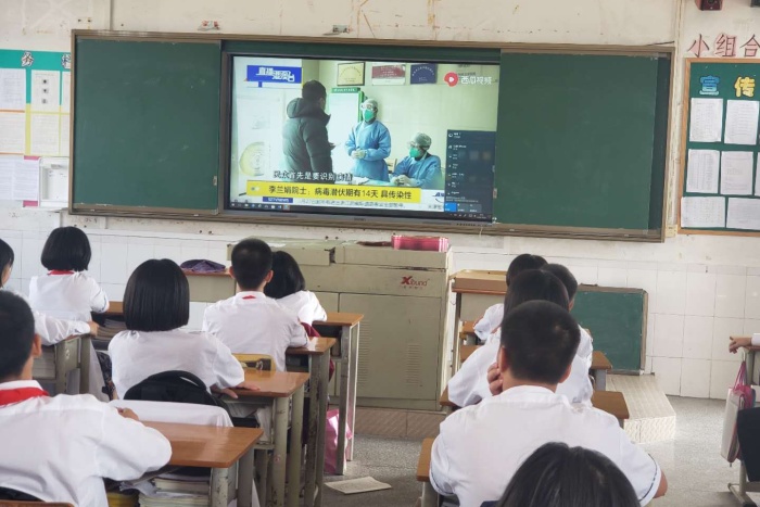 首先陳老師通過觀看視頻讓同學(xué)認(rèn)識新冠肺炎的基本常識及日常生活學(xué)習(xí)中如何防疫。接著大家又觀看了視頻《共同防疫,校醫(yī)齊出招——安心圖書館》,了解到安心圖書館需要大家共同努力,學(xué)校圖書館的管理員應(yīng)該每天做好圖書館的衛(wèi)生清潔、通風(fēng)、桌椅、地板、書柜消毒等工作,營造安全清潔的公共場所。而同學(xué)們進(jìn)入學(xué)校圖書館也要嚴(yán)格做好防疫措施:自覺戴好口罩、間隔一米距離就座、及時對雙手進(jìn)行消毒等。最后,同學(xué)們結(jié)合視頻和自己的認(rèn)識積極發(fā)言,再次明確自己去圖書館必須要做好的一些防疫行為。