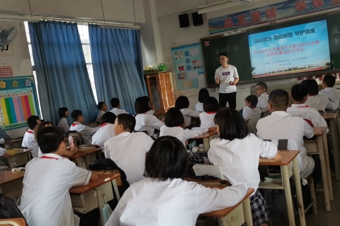 在視頻中講述了一個(gè)學(xué)生小明發(fā)現(xiàn)不適,及時(shí)報(bào)告科任老師。再轉(zhuǎn)送到班主任處幫其測(cè)量體溫,發(fā)現(xiàn)體溫偏高后再轉(zhuǎn)送到醫(yī)務(wù)室讓醫(yī)生重新測(cè)體溫。確定出現(xiàn)發(fā)燒現(xiàn)象后,詢問小明是否出過省或者是否接觸過境外人員。由此推測(cè)外教老師為傳染源,并由老師向家長(zhǎng)確認(rèn)情況。經(jīng)確實(shí)后,對(duì)小明如校車等公共接觸場(chǎng)合的行蹤進(jìn)行傳染懷疑。逐級(jí)上報(bào)啟動(dòng)應(yīng)急預(yù)警機(jī)制確保傳染情況壓到最小。由班主任上報(bào)到校長(zhǎng),由校長(zhǎng)上報(bào)到上級(jí)教育部門,根據(jù)市鎮(zhèn)區(qū)疾控中心流行病學(xué)調(diào)查報(bào)告,落實(shí)停課、健康風(fēng)險(xiǎn)告知等應(yīng)急措施。