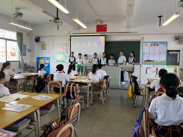 為了共健更有愛(ài)、凝聚力更強(qiáng)的班集體,11月5日上午,曹二小學(xué)蘇麗梅老師在六(2)班上了主題為“我愛(ài)我班”的主題隊(duì)會(huì)課。在報(bào)數(shù)、出旗、唱隊(duì)歌等程序后,蘇老師在嘹亮的隊(duì)歌聲中宣布主題隊(duì)會(huì)課正式開(kāi)始,并向全體隊(duì)員給予寄語(yǔ):我們每一個(gè)人都是一滴小水滴,來(lái)自四面八方。是一個(gè)“緣”字讓我們匯集到了曹二小學(xué)這條美麗的河流中,我們要齊心協(xié)力讓這條河流長(zhǎng)流不息,閃亮動(dòng)人。